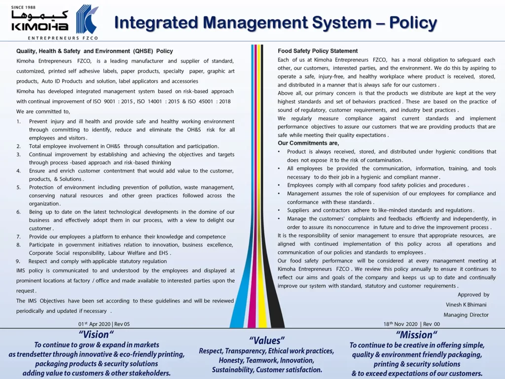 “To continue to be creative in offering simple, quality & environment friendly packaging, printing & security solutions & to exceed expectations of our customers”.